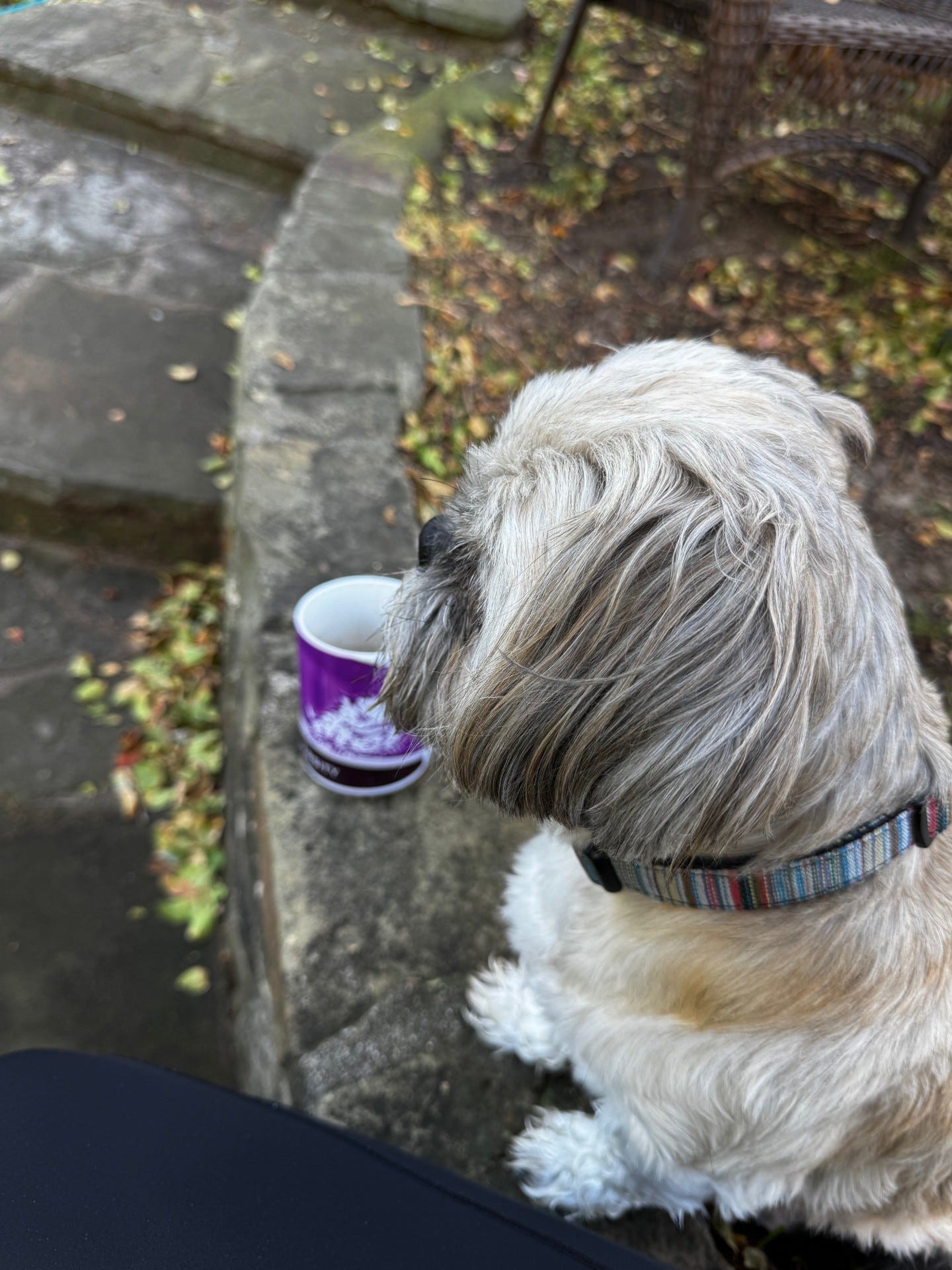 There is nothing “good” on the tube at 7:45 AM. It’s all become noise, so I put it down, looked at my Shih Tzu, and asked, “You want to take our coffee outside?”